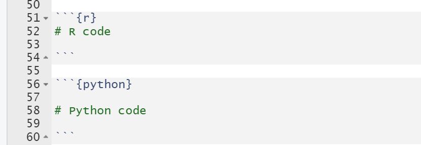 {r} chunk and python codes are enclosed in {python} chunk.#R code